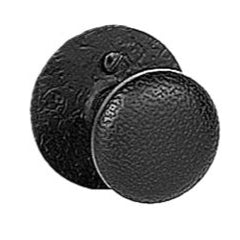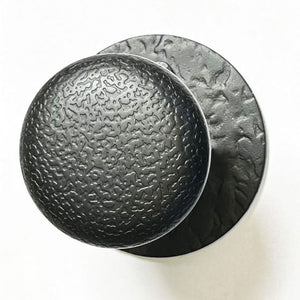 This textured dummy knob with round rose is ideal for use in a situation where all that's needed is a door pull but that has the look of a working door knob set. It is made of iron and has a matte black finish.